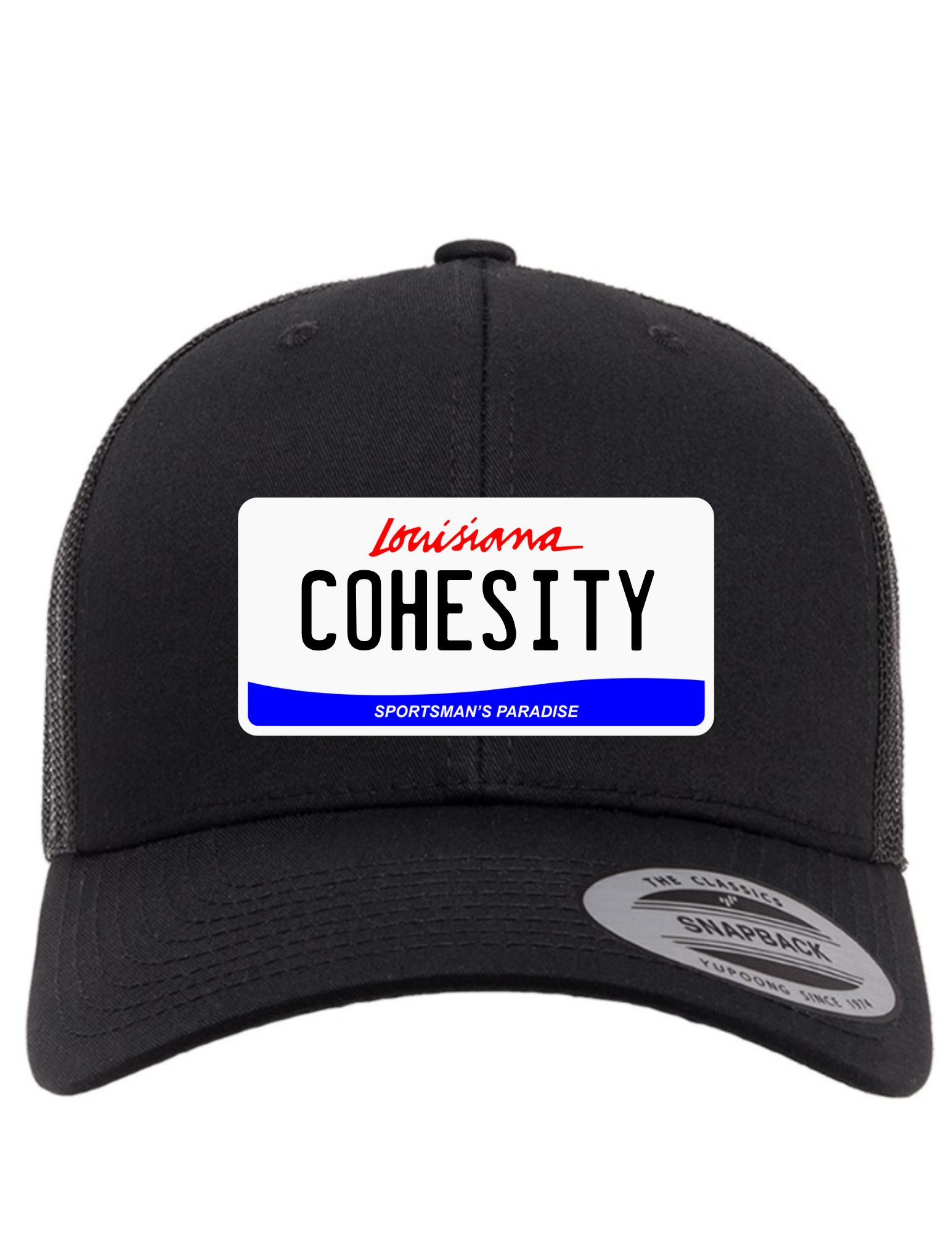 Cruise down the highway in style with this Cohesity Branded Trucker Hat. Featuring a classic state license plate design on the front, this playful cap combines regional pride with bold branding. The structured trucker silhouette offers comfort and visibility, while the adjustable back strap ensures the perfect fit for any head size. Whether you're repping your home state or collecting license plate gear, this hat delivers personality and practicality in one fun package.